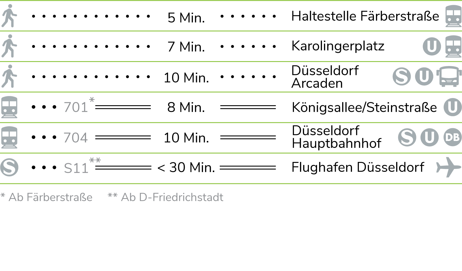 Die S-Bahn-Haltestellen Düsseldorf-Bilk, Friedrichstadt und Volksgarten sind schnell zu erreichen.