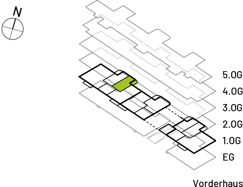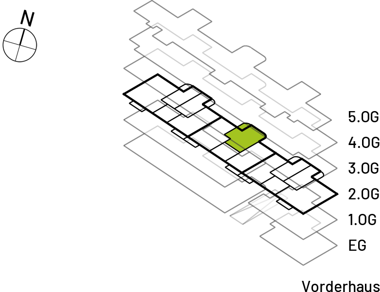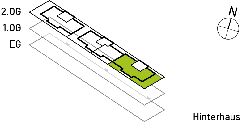 Von den insgesamt 71 Wohnungen befinden sich 16 im Gartenbereich des GO. Alle verfügen über Balkone oder Terrassen, zum Teil sogar über eigene Grünflächen.